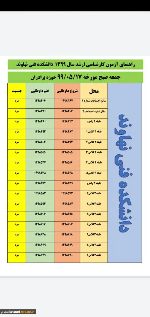 امتیاز دهید : اطلاعیه برگزاری آزمون کارشناسی ارشد نهاوند + شماره و جای صندلی 2 چهارشنبه 15 مرداد 1399 ساعت 8:57