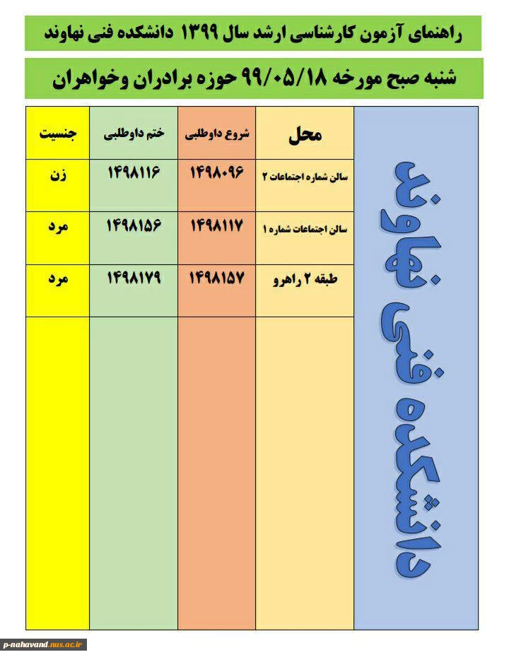اطلاعیه برگزاری آزمون کارشناسی ارشد نهاوند + شماره و جای صندلی  2