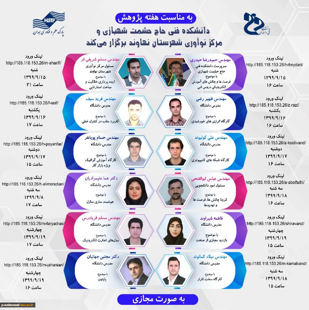 امتیاز دهید : وبینارهای دانشگده فنی و حرفه ای نهاوند به مناسبت هفته پژوهش 2 پنجشنبه 13 آذر 1399 ساعت 21:59