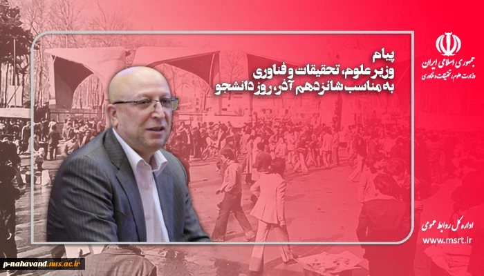 امتیاز دهید : وزیر علوم در پیامی به مناسبت روز دانشجو: آرمان استقلالخواهی شهدای ۱۶ آذر در دانشگاهها تداوم دارد 2 سهشنبه 16 آذر 1400 ساعت 8:04