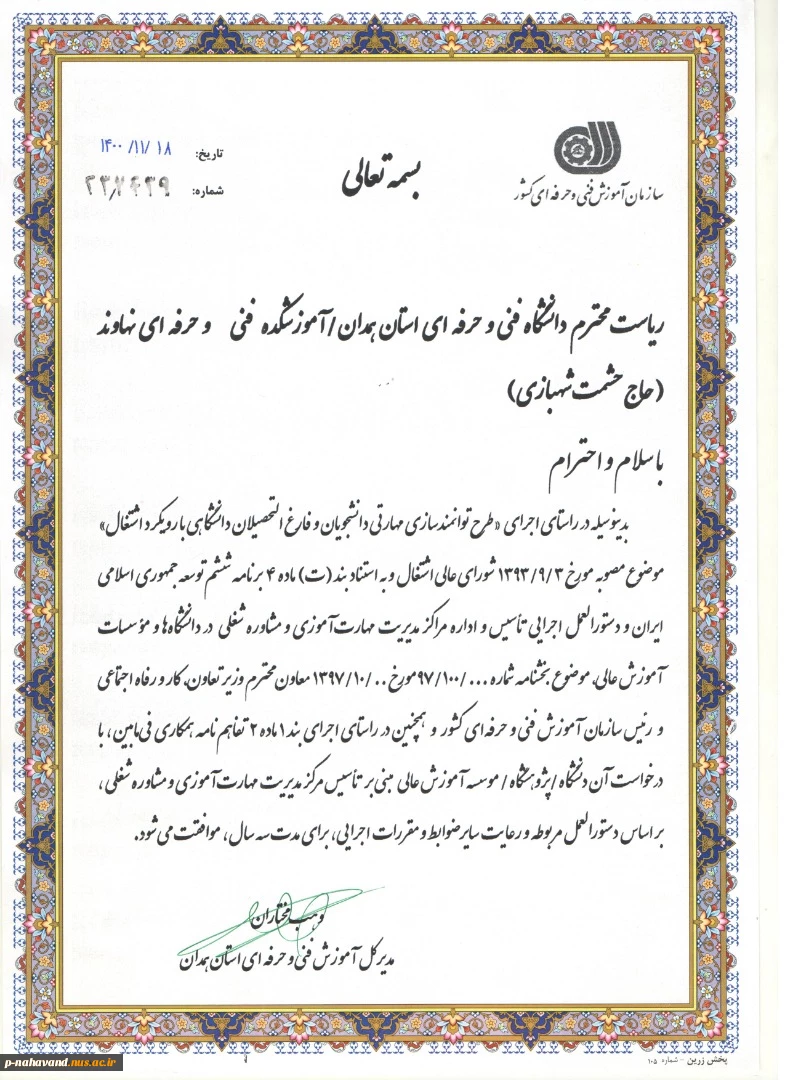 امتیاز دهید : افتتاح مرکز مدیریت مهارت آموزی و مشاوره شغلی(TMC) در دانشکده فنی و حرفه ای(حاج حشمت شهبازی)نهاوند 3 پنجشنبه 21 بهمن 1400 ساعت 16:40
