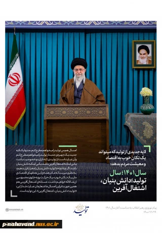امتیاز دهید : رهبر معظم انقلاب در پیام نوروزی تاکید کردند: شعار امسال «تولید؛ دانشبنیان، اشتغالآفرین» است/ امروز دولتی مردمی در ریلی متفاوت از دولت قبل، امیدها را زنده کرده است/ با تحرک رئیس جمهور و همکاران ایشان شعار امسال پیش خواهد رفت 2 سهشنبه 2 فروردین 1401 ساعت 17:40