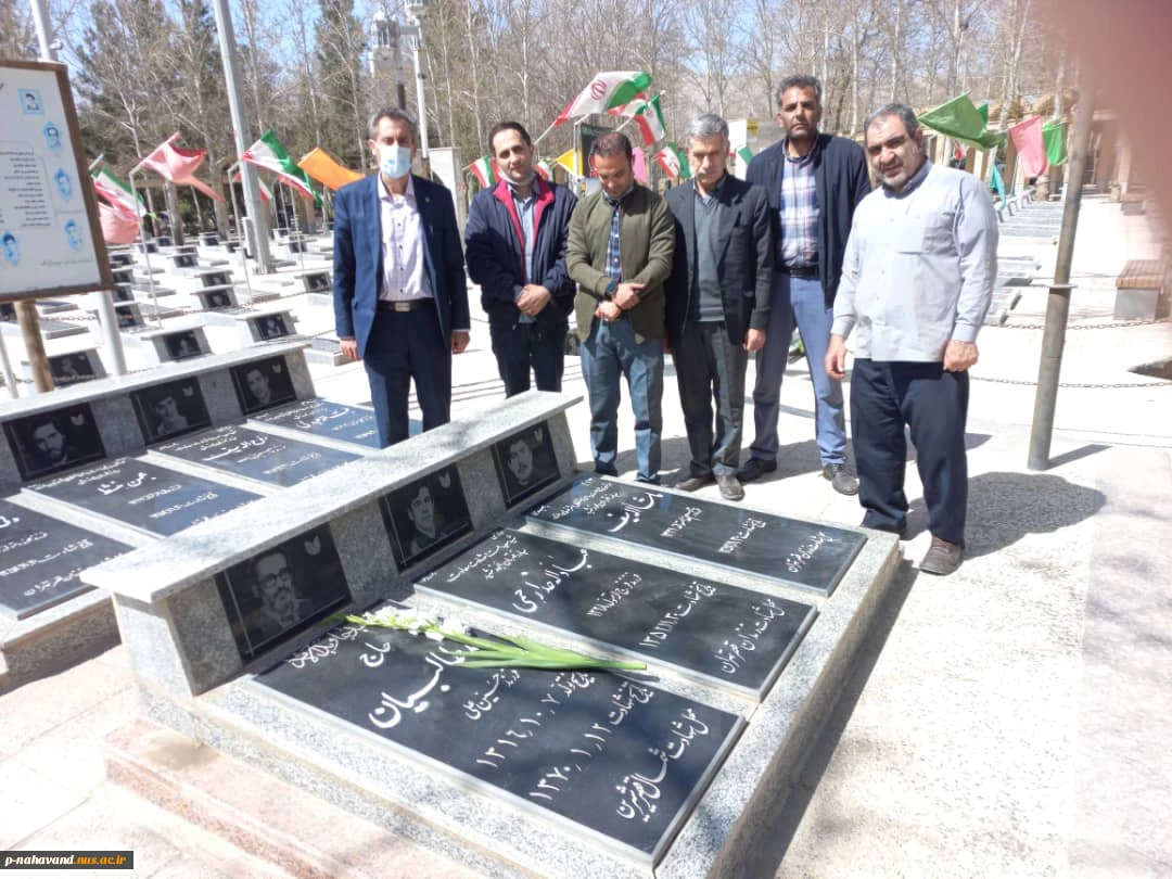 مقارن با سالگرد شهدای گرانقدر حاج محد طالبیان ( 12 فروردین) و حاج میرزا محمد سلگی ( 14 فروردین) در دومین روز ماه مبارک رمضان بعد از ساعت اداری، جمعی از همکاران آموزشکده فنی و حرفه ای نهاوند ( حاج حشمت شهبازی) با حضوردرگلزار شهدای باغ بهشت این شهرستان و نث