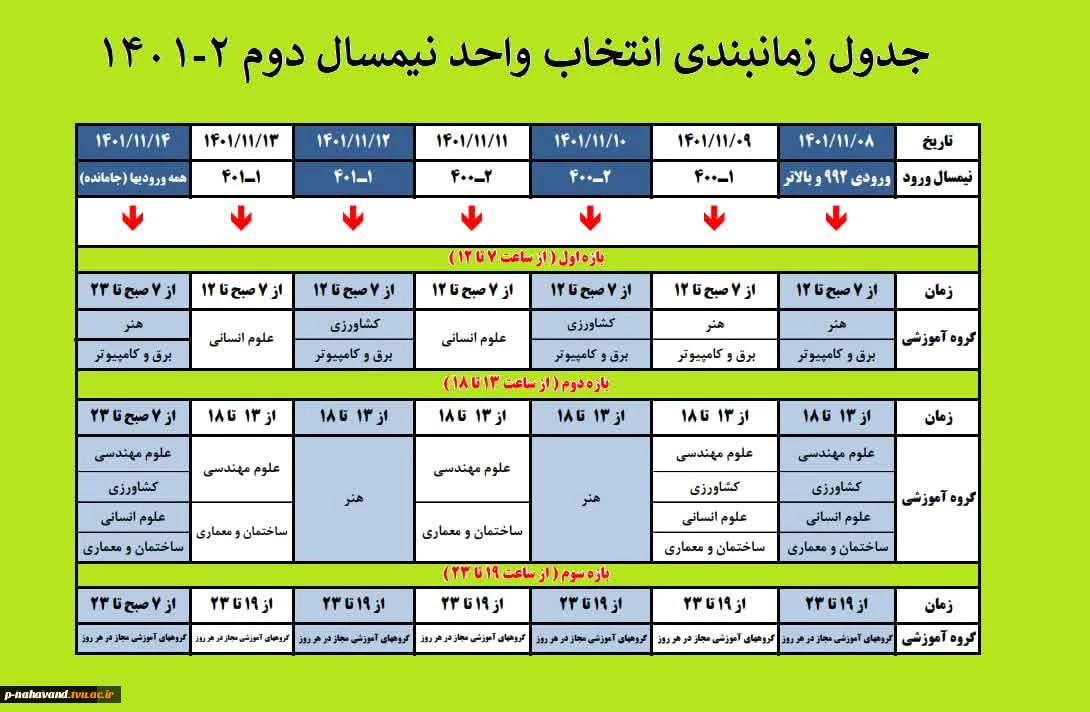 جدول زمانبندی انتخاب واحد نیمسال دوم 2