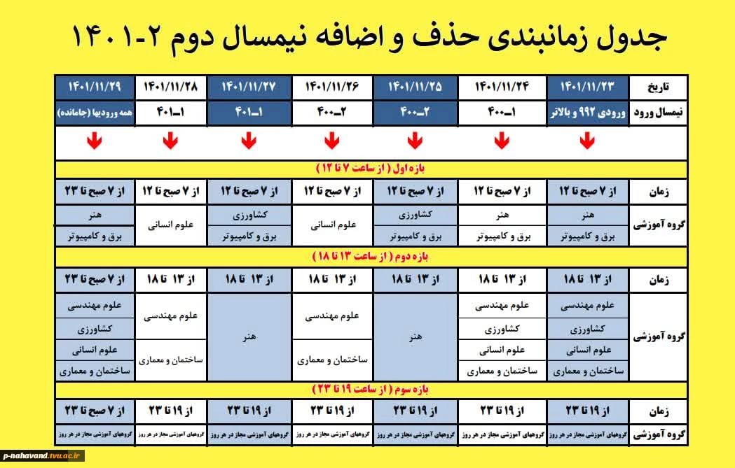 جدول زمانبندی انتخاب واحد نیمسال دوم 3