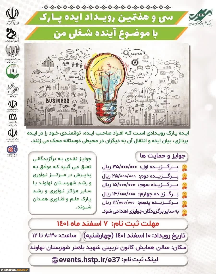 امتیاز دهید : برگزاری سی و هفتمین رویداد ایده پارک با موضوع ایده پارک آینده شغلی من با محوریت آموزشکده نهاوند 12 پنجشنبه 11 اسفند 1401 ساعت 15:48
