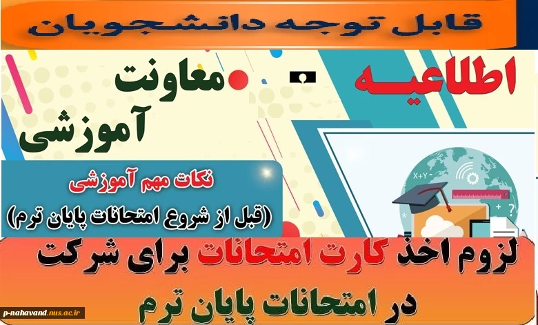 امتیاز دهید : نکات مهم آموزشی و انضباطی در خصوص برگزاری امتحانات پایان ترم(012) 2 دوشنبه 15 خرداد 1402 ساعت 20:37