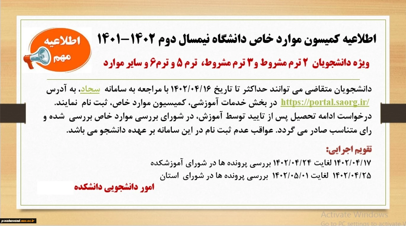 اطلاعیه مهم کمیسیون موارد خاص دانشجویی 2