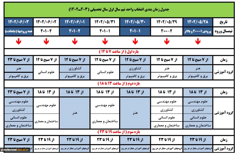 آخرین جدول زمانبندی انتخاب واحد نیمسال مهر 1402 2