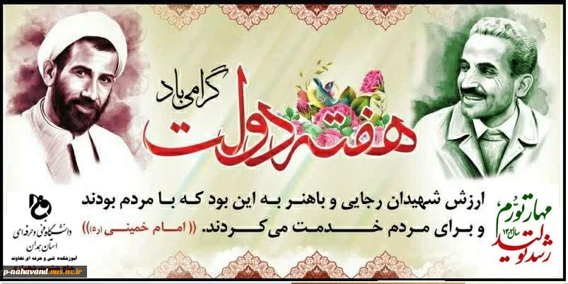 امتیاز دهید : یاد و خاطره شهیدان رجایی و باهنر و هفته دولت گرامی باد. 2 پنجشنبه 2 شهریور 1402 ساعت 23:58