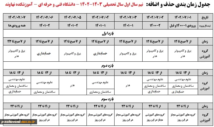 حذف و اضافه نیمسال اول سال تحصیلی 1403-1402 (021) 2