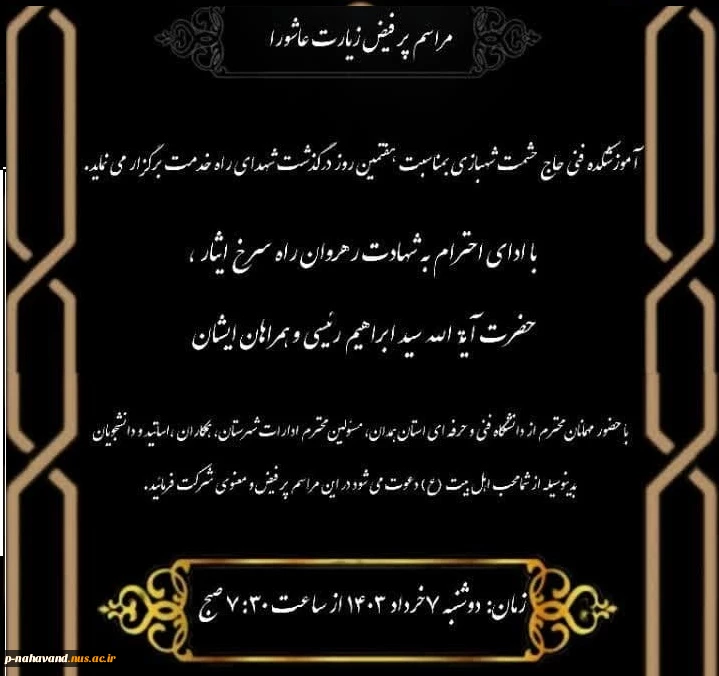 امتیاز دهید : همه دعوتید: به مناسبت هفتمین روز گرامیداشت نام و یاد شهدای راه خدمت، مراسم پرفیض زیارت عاشورا، -هفتم خردادماه ساعت هفت و نیم صبح 2 شنبه 5 خرداد 1403 ساعت 1:16