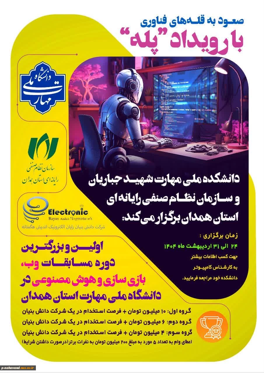 امتیاز دهید : کسب فهرمانی استان در مسابقات هوش مصنوعی و رتبه سوم در تیمی، مسابقه صعود به قله های فناوری " رویداد پله" 2 پنجشنبه 1 خرداد 1404 ساعت 17:24
