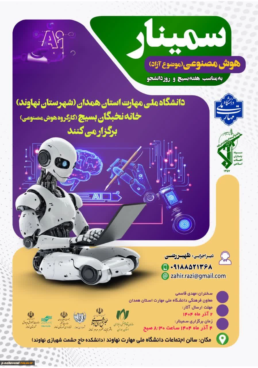 امتیاز دهید : دانشگاه ملی مهارت استان همدان و خانه نخبگان سپاه(کارگروه هوش مصنوعی) برگزار می کند. 2 یکشنبه 4 آبان 1404 ساعت 14:53